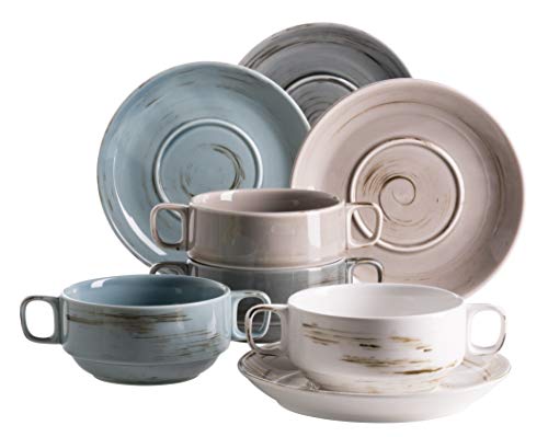 Mäser, porslin, soppkopp set DERBY, vit, beige, grå, blå