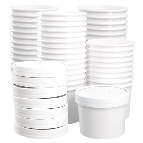 KEILEOHO 50 stycken 350 ml engångs soppkopp vit med dekel, 350 ml soppkopp kartong To Go, glassbägare matkopp kartong för soppmat