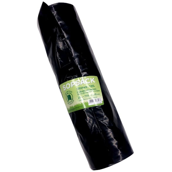 Sopsäck LDPE återv. 125L svart 750x1150, 0,05 25st/rl