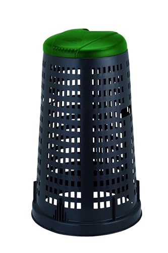 Grizzly sopsäckshållare, 1 st soptunna med svart lock, höjdjusterbart plug-in system med spännring, för soptunnor i olika storlekar från 25–120 liter