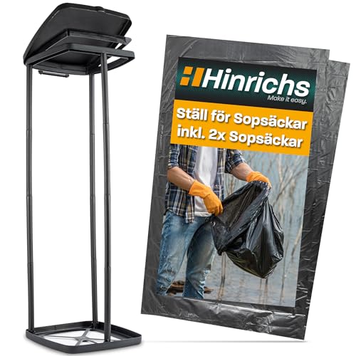Hinrichs Sopsäcksställ 120L - Höjdjusterbar Sopsäckshållare med Lock & Klämring för 120L Sopsäckar - Sopsäckshållare med Lock inkl 2x 120L Soppåsar - Gult Påsställ