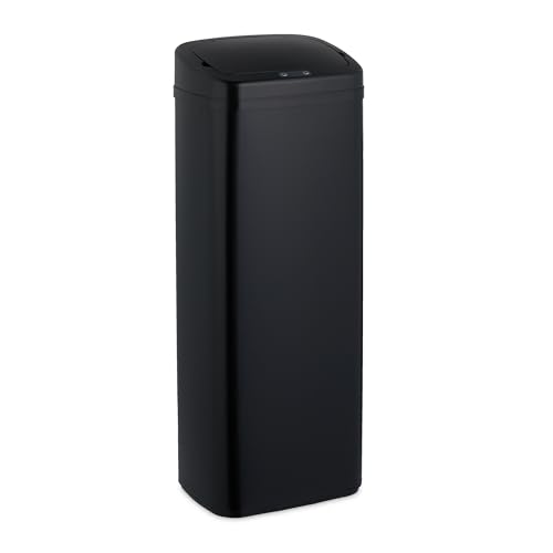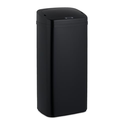 Relaxdays Papperskorg med sensor, 40 l, elektriskt lock, sopsäckshållare, köksoptunna, soptunna, kök, svart