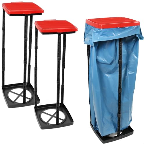 COM-FOUR® 3x sopsäcksställ med lock - kan monteras i 3 möjliga höjder - perfekt för hem, trädgård, verkstad och camping - gul påshållare - avfallssorterare - sopsäckshållare (3x - röd)
