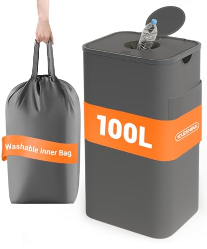 YOUDENOVA 100 l pantflaskor, samlingsbehållare med luktsäker och lock, papperskorg kök, flasksamlare tommat och avfall glas, förvaring, återvinningsbehållare, sopsäckshållare för förråd, grå