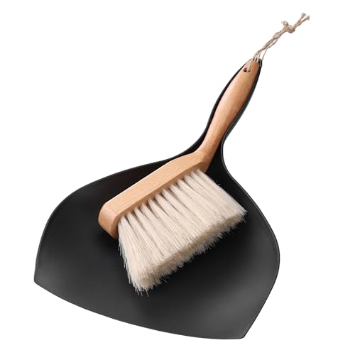 Navaris sopset av trä och plast – minisopskyffelset – handkvast med spade – liten kvast – bordsopset sopborste liten – retro stil handborste vit svart