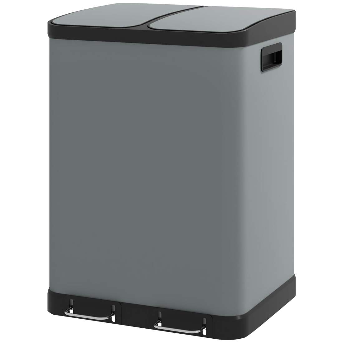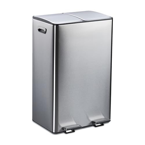 Relaxdays Soptunna, 2 fack, 30 l vardera, avtagbar innerhink, fotpedal, kök, pedal, järn, silver/svart