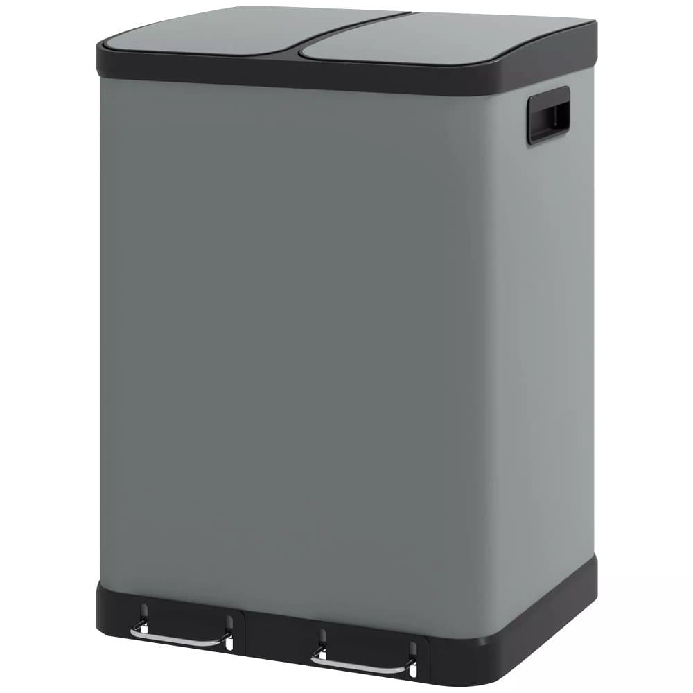 HOMCOM dubbel soptunna 2x30L pedalkorg med lock, sopkärl i metall för kök/kontor, 48,8x39,5x67 cm, grå