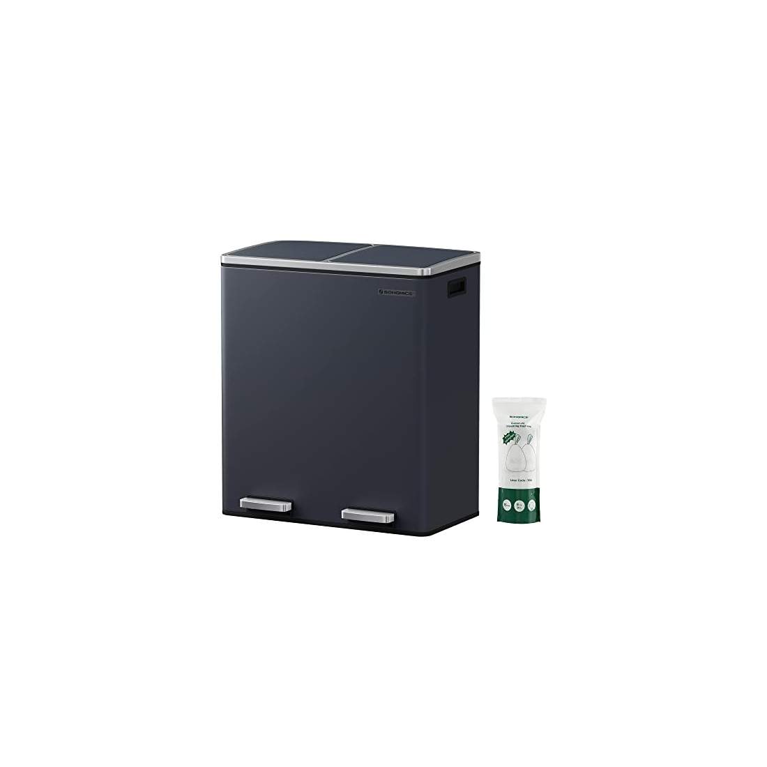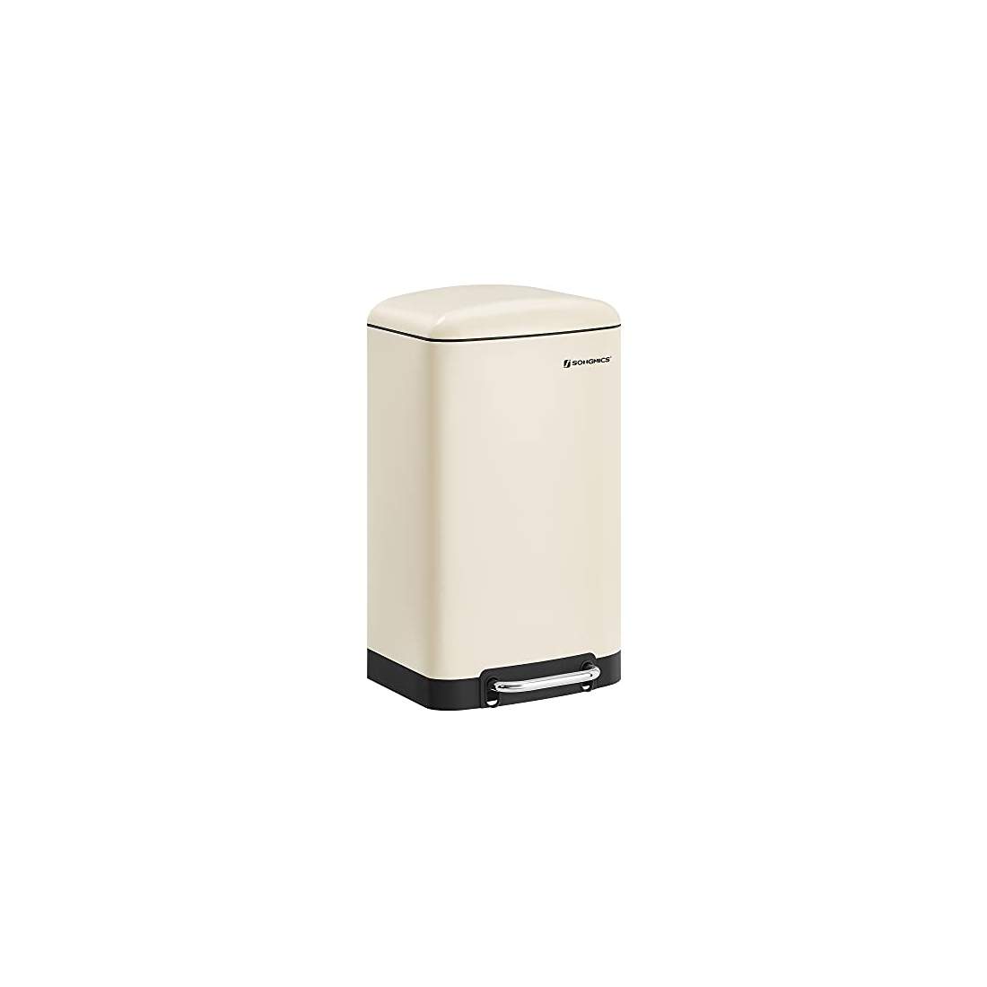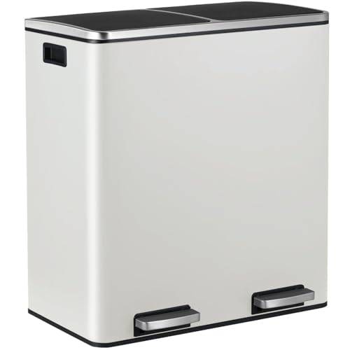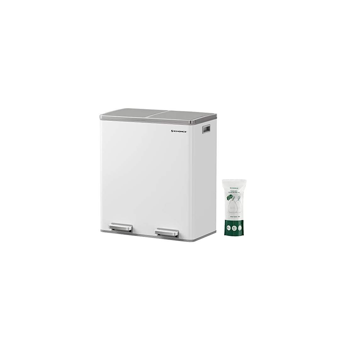 SONGMICS soptunna för köket, 30L, sopsortering, metallsoptunna, pedalkärl med innerkärl och handtag, sopsorteringssystem, 2 x 15 liter, softclose, lufttät, vit LTB30WT