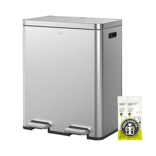 EKO Edison soptunna 2 fack, 2 x 30 L, pedalfack kök med dubbel inre hink, inkluderar 20 sopsäckar, stor kapacitet avfallsseparationssystem, mjukt stängningslock, fingeravtrycksfri, matt rostfritt