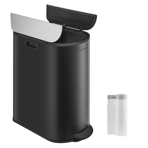 SONGMICS kökssoptunna, avfallssepareringssystem 2 fack, 30 L och 20 L, smal soptunna, pedalkorg för gula påsar och avfall, med 2-delat lock, bläck svart metallic silver LTB570B02