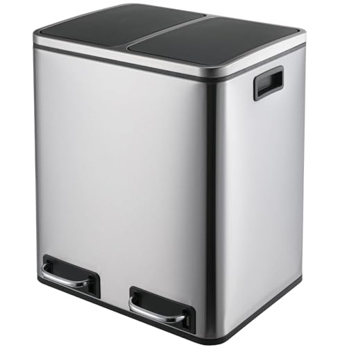 Giantex Selektiv sorterad soptunna med dubbla fack, 2 x 30 l i rostfritt stål, pedalsoptunna, luftfräscharlåda, slätt och tyst lock, 2 avtagbara hinkar, återvinning av kök