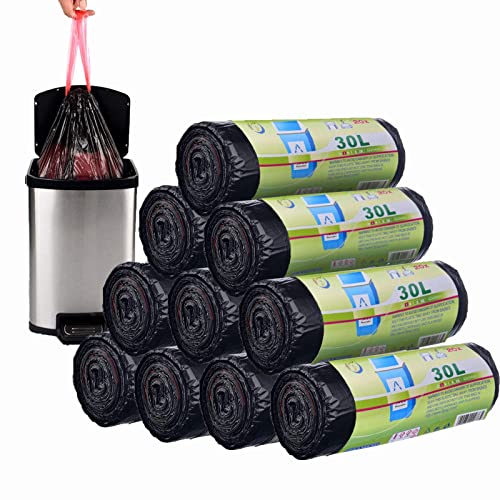 ASelected 200 st 30 l soppåsar med skjuthandtag, extremt läckagesäkert set med 10 rullar, rektangulär soptunna 30 liter, stor storlek 62 x 54 cm, svart