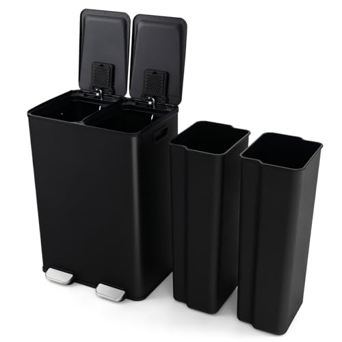 COSTWAY Soptunna 2 fack, 2 x 30 l soptunna kök, pedalhink med försiktigt stängande lock, avfallssepareringssystem inkl. 2 deodoriseringsfack, tillverkade av rostfritt stål och plast (svart)