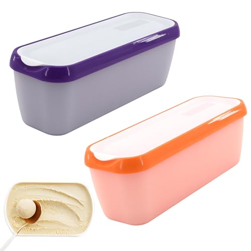 Glassbehållare med lock, 2 stycken på 1,5 liter glassbehållare, återanvändbara förvaringsbehållare, glassbehållare för yoghurt, sorbet, glass, lila orange