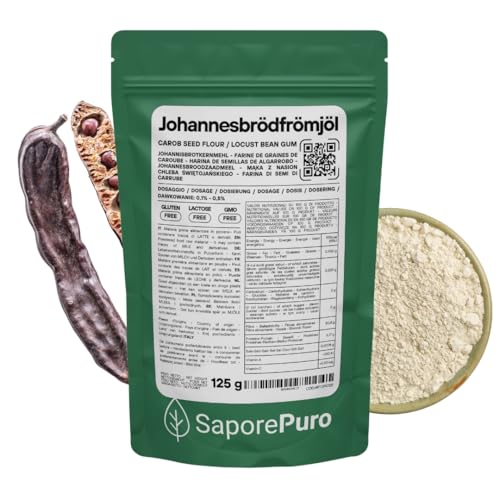 Saporepuro Johannesbrödmjöl 50 gr - Carob Seed Flour - GLUTENFRITT – 100% rent naturligt förtjocknings- och gelbildningsmedel – Perfekt för Glass, Sorbet, Desserter och Såser