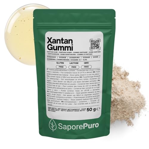 Saporepuro Xantan gum pulver 50 gr - Idealisk för glass, såser, toppings, sorbet, geler, pizzadegar, mixologer, molekylär matlagning - 100% ren