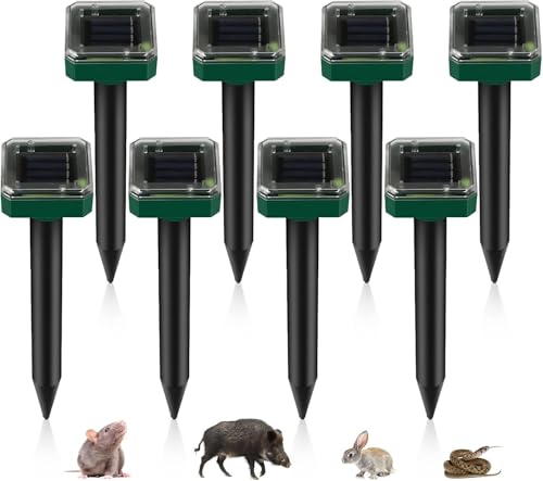 Solcellsförsvar: 8 stycken Ultrasonic solar födelsekastskräck, bekämpning av födelsemärkesbekämpning, sorkskrämma, mole repellent, skadedjursbekämpning med IP65 för trädgården, gräsmattan