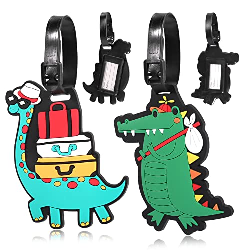 2 stycken bagagelapp bagage, söt dinosaurie bagageetikett med adressskylt bagagelapp ID etikett bagage handväska dag resväska etiketter namn adress skyltar resetillbehör