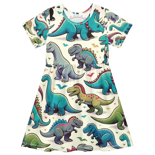 GAIREG Flickor söt dinosaurie tryck kortärmad klänning småbarn sommar vardaglig solklänning 2T till 8, Söta dinosaurier, 5-6 år