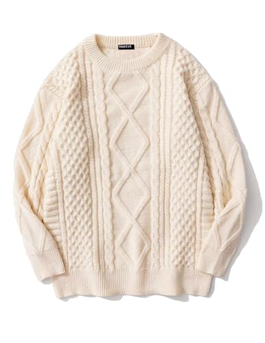 Vamtac Ko stickad tröja vintage rund hals söt val dinosaurie retro överdimensionerad tröja anka estetisk tröja topp, 01 kräm, XS