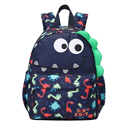 RAVUO Barnryggsäck, söt förskoleryggsäck för pojkar, flickor, skolväska, dagis, med bröstrem, dinosaurie