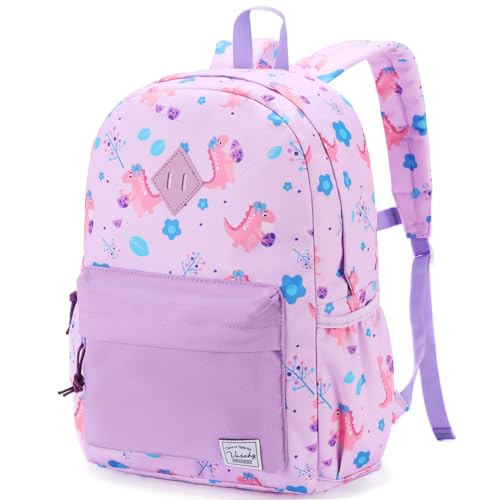 VASCHY Barnryggsäck pojkar flickor, söt vattentät förskola barn ryggsäck dagis småbarn ryggsäck skolväska med bröstbälte, Dinosaurie, violett, 1, Dinosaure Violet-1, Tecknad