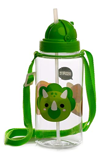 Puckator Adoramals dinosaurie – dryckesflaska för barn med sugrör – återanvändbar vattenflaska för flickor och pojkar med en bifogad lång rem – BPA-fri – för skola barnkammare – söt dinosauriedesign