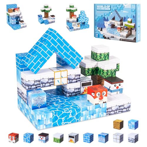 Carehabi Magnetiska byggstenar – set med 54 delar, kreativa 3D-byggstenar för barn, gör-det-själv snövärld med söta figurer, pedagogiska leksaker från 3 år
