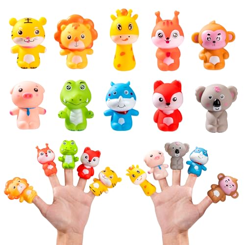 Fingerdockor set, 10 stycken söta djur fingerdockor små fingrar docka rekvisita gummi badleksak present till jul födelsedag barn souvenir