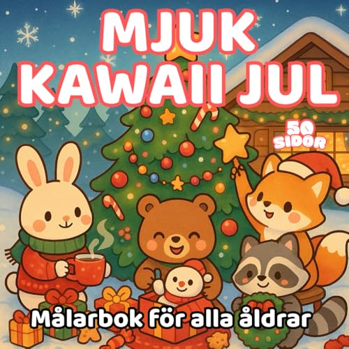 Mjuk Kawaii Jul – Målarbok för alla åldrar: 50 sidor att färglägga med söta djur, julgranar, snölek och varm choklad – en mysig vinterbok för hela familjen