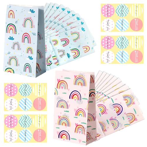 20 st festpåsar, regnbågspåsar för barnfödelsedagar med klistermärken Söta pappersgodispåsar Små papperspåsar för fest för barnfest (blå & rosa)