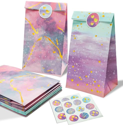 Flintronic Papperspåsar, 20 st Pappers Festpåsar med Söta Klistermärken för Presentförpackning, Bröllop, Barnfest, Firande, Baby Shower, Födelsedag, Halloween, Jul