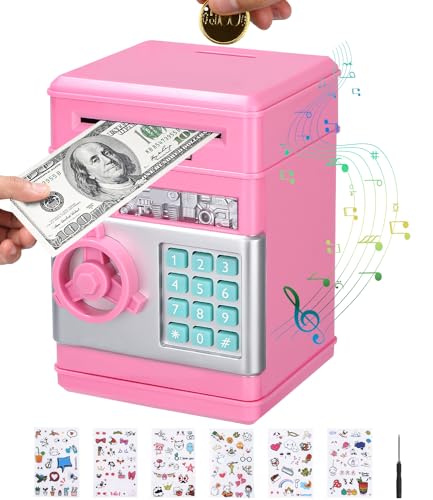Birshe Säker Elektronisk Sparbössa med Digital Bankomat - Stor med Söta Klistermärken - Jul & Födelsedagspresenter för Flickor & Pojkar