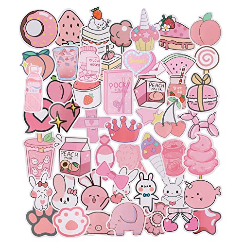 KINBOM 50st Rosa Söta Klistermärken, Självhäftande Vattentäta Vinyl Dekaler Kawaii VSCO Klistermärken för Vattenflaskor Laptop Klippböcker Journalföring Flickor Tonåringar (Olika Mönster)