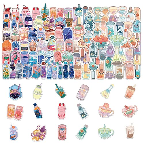 LSYYSL 100 ark tecknade dryckesflaskklistermärken, vattentäta PVC-klistermärken, söta klistermärkeset, klippbokshantverk, självhäftande estetiska klistermärken