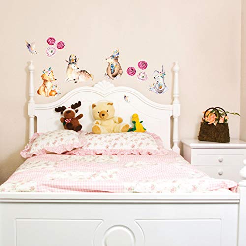 Väggklistermärke för barn söta skogsdjur - klistermärken för kref, kanin och räv - dekorativt väggklistermärke för sovrum och vardagsrum - 30 x 30 cm