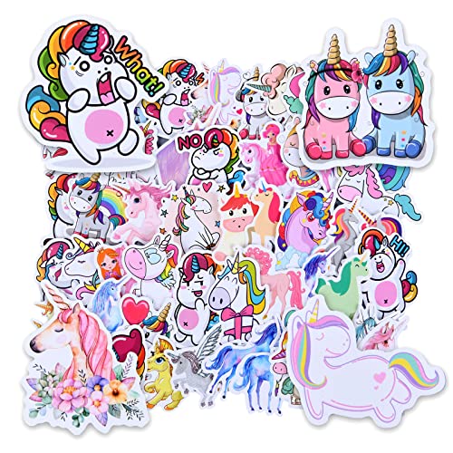 OSDUE 50 st Enhörning vattentäta klistermärken, söta tecknade klistermärken, trendiga estetiska klistermärken för vattenflaskor, bärbar dator, bil, klippbok, telefon, skateboard, dator, vägg, fönster, barn, pojkar, flickor, vuxna, gåvor