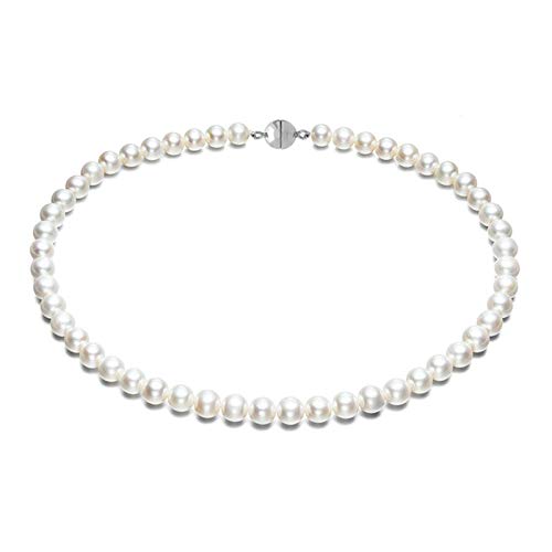 Treasure Bay Elegant AA kvalitet 7 mm naturligt vitt sötvattenspärlor halsband för kvinnor, damer och flickor presenteras i en vacker presentförpackning för smycken, Pärla, Pärla