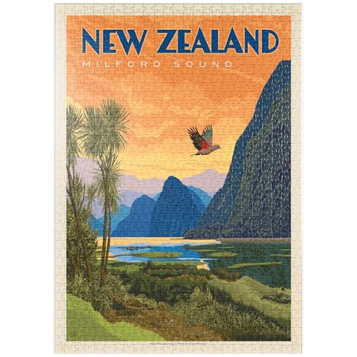 Nya Zeeland: Milford Sound, Gammalt Affisch - Premium 1000 bitar pussel - MyPuzzle specialkollektion från Anderson Design Group