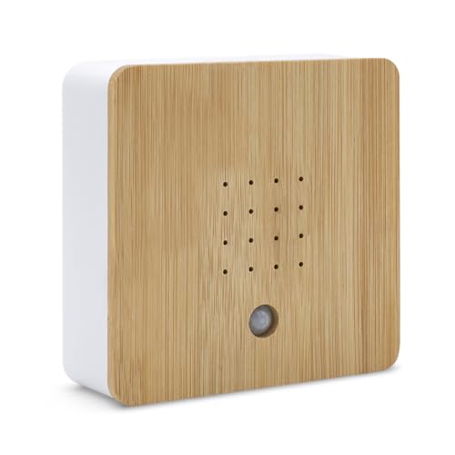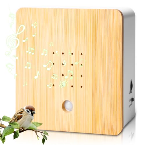 Soundbox med fågelkvitter med bambufront, 12 cm, högtalare med lugnande fågelsång, dekorativ låda med naturligt fågelljud, 2 meter sensor, för badrum, spa, gäster, toalett och avkoppling