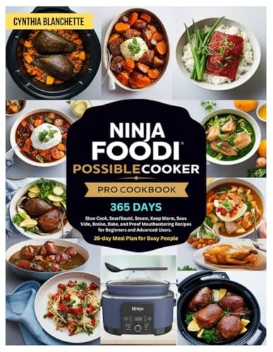 Ninja Foodi PossibleCooker PRO Cookbook: 365 Days to Slow Cook, Sear/Sauté, Steam, Keep Warm, Sous Vide, Braise, Bake, and Proof Mouthwatering Recipes ... With a 28-day Meal Plan for Busy People.