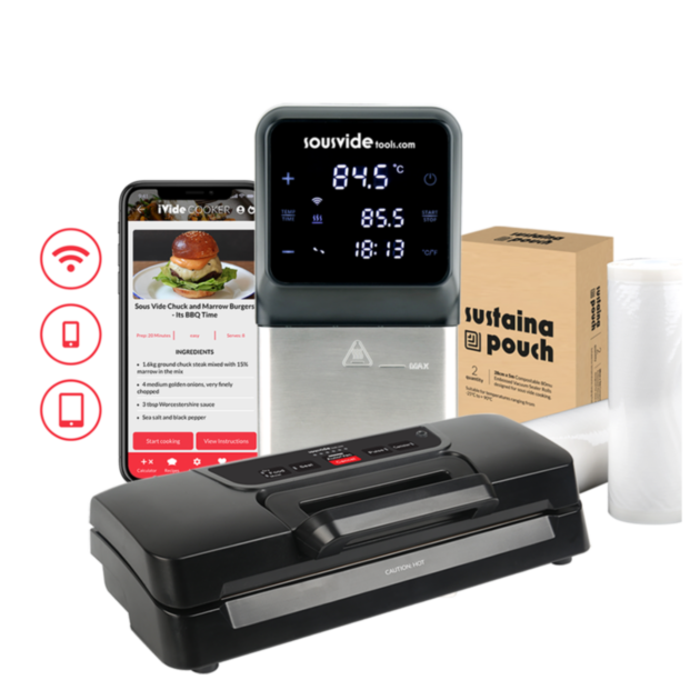 iVide® Plus Jnr WIFI Sous Vide Stav (IPX7-Vattentät) + Senses 300 Kammar-Vakuumförpackare Paket