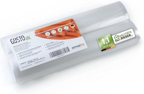 GustoVac Vakuumrullar 2 folierullar 30 x 600 cm – svetsfilm för vakuumförpackare – präglad struktur – lämplig för sous-vide matlagning – vakuumpåse rulle vakuumtätare folierulle vakuummatlagning