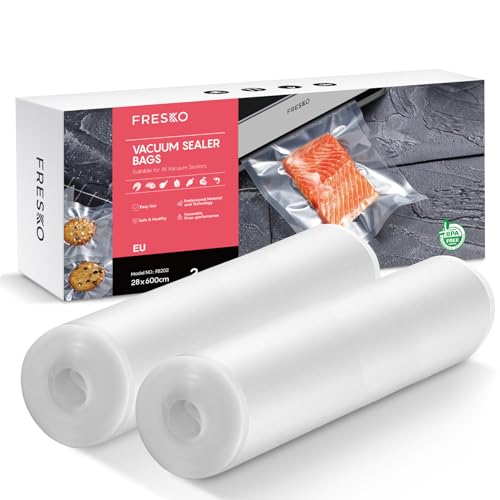 FRESKO Vakuumrullar 2 rullar 28 x 600 cm, professionella vakuumpåsar, foliepåsar, storlek för alla vakuumförpackare, BPA-fria, präglade luftspår, sous-vide-fryspåsar