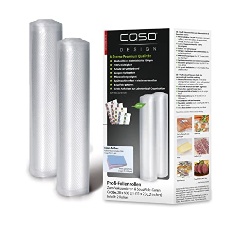 CASO Professionell folierullar 28 x 600 cm/2 rullar, för alla vakuumförpackare, BPA-fria, mycket starka och slitstarka ca 150 µm, doftsäker, koksäker, sous vide, återanvändbar, inkl. Food Manager