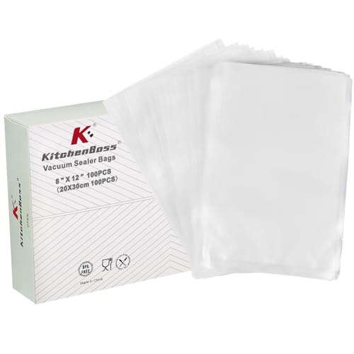 KitchenBoss Vakuumpåse vakuumpåse mat vakuumpåse: 20 x 30 m 100 st för alla vakuumförpackare sous-vide påse BPA-fri vakuumpåse
