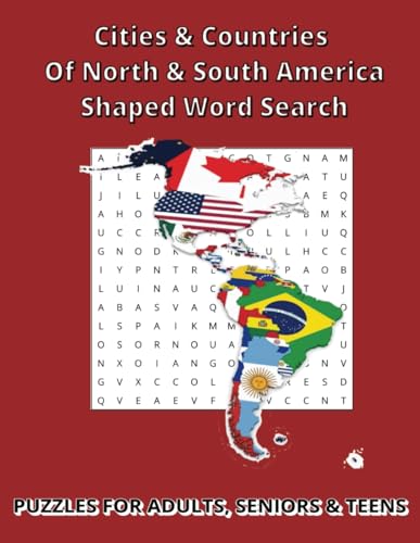 Cities & Countries Of North & South America Shaped Word Search: 30+ Easy to Read Map-Shaped Word Puzzles, 8.5x11 inches, 67 pages. Great For Travel, Holidays, Free Time