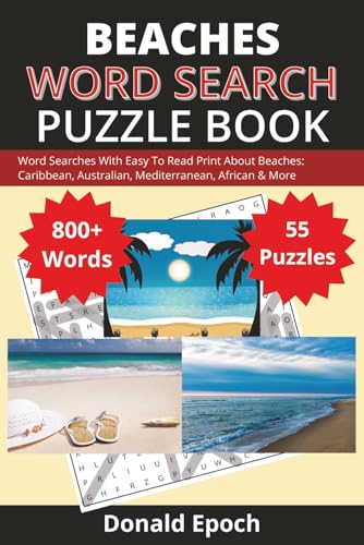 Beaches Word Search Puzzle Book: Word Searches About Beaches: Caribbean, Australian, South Pacific, Californian, Floridian & More | Easy to Read Print ... For Gifts, Vacations, Holidays and Free Times