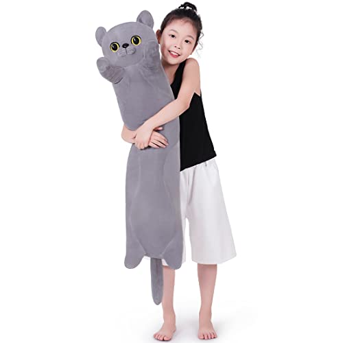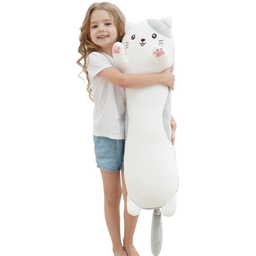 Dalmao 90cm långa katt plysch kuddar, stora katt fyllda djur squishy kuddar, söt Kitty Plushie sovkudde gåvor för barn födelsedagar, påsk