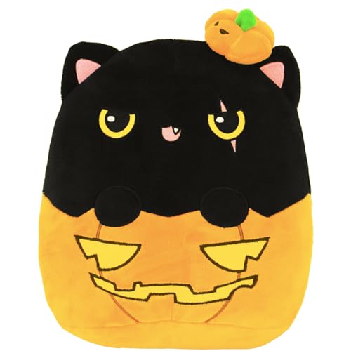 Pumpakatt, mjuk leksak, plyschkudde, söt plyschleksak, mjuk gosig kudde, tecknad docka av plysch, sovkudde, present till barn, för födelsedag, halloween eller som julklapp